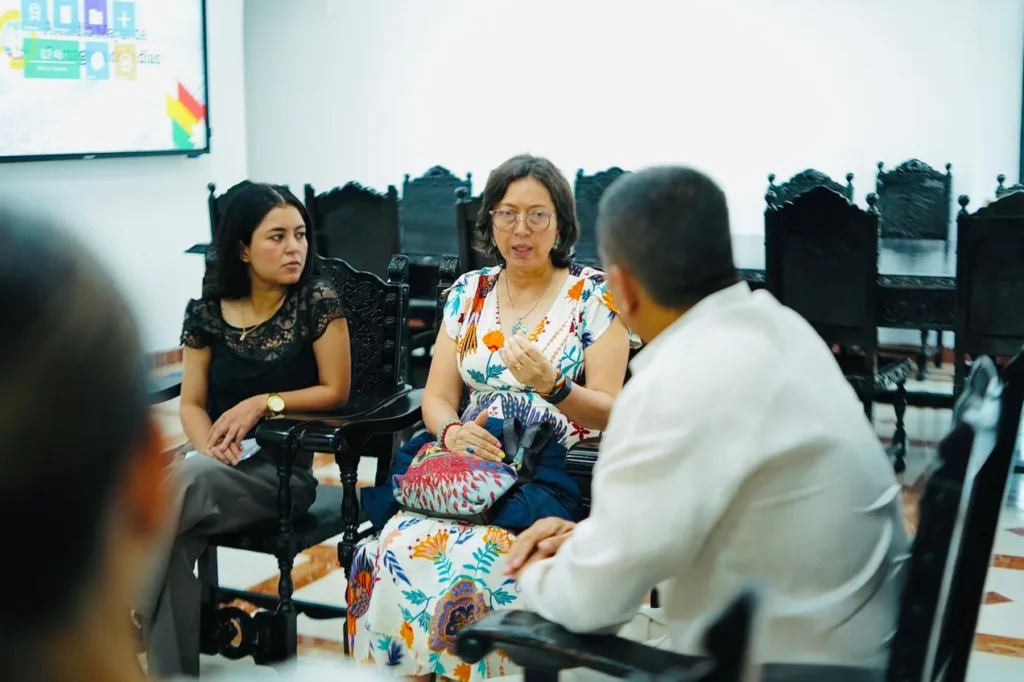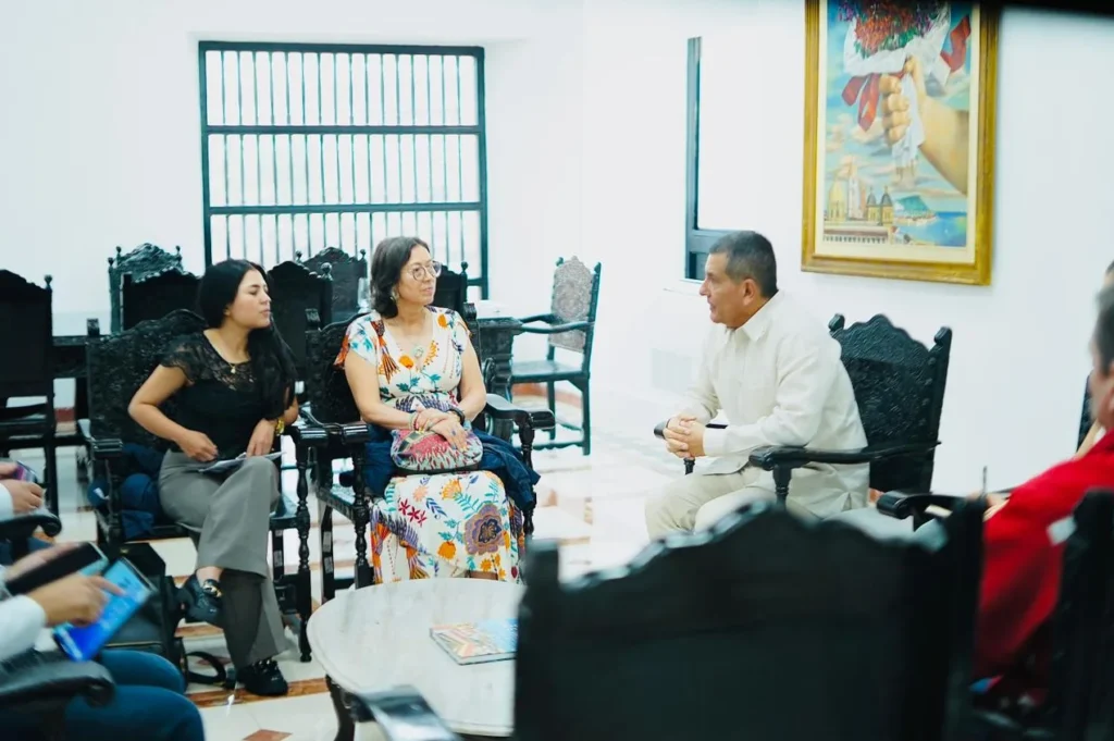 En el Palacio de la Aduana, el alcalde de Cartagena, Dumek Turbay Paz, sostuvo una reunión de trabajo con Gloria Arriero, directora de Migración Colombia, con el propósito de avanzar en una agenda conjunta frente a los retos y oportunidades que trae el crecimiento del turismo internacional en La Heroica.