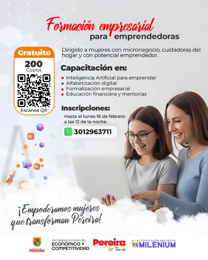 Alcaldía de Pereira abre convocatoria de formación empresarial para 200 mujeres emprendedoras y con potencial emprendedor