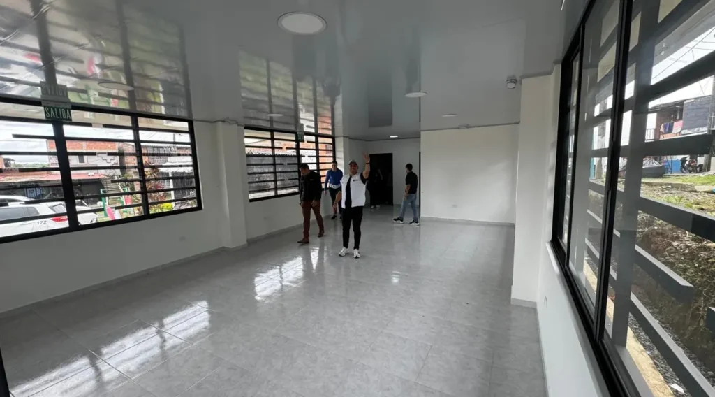 Las visitas continuaron en las sedes comunales de Villavicencio y la sede de Panorama II, en la comuna Consota, donde continúan las intervenciones estructurales para el beneficio de la comunidad. En estos espacios se adelantan trabajos de mejoramiento de pisos, baterías sanitarias, cocinas, techos y pintura.