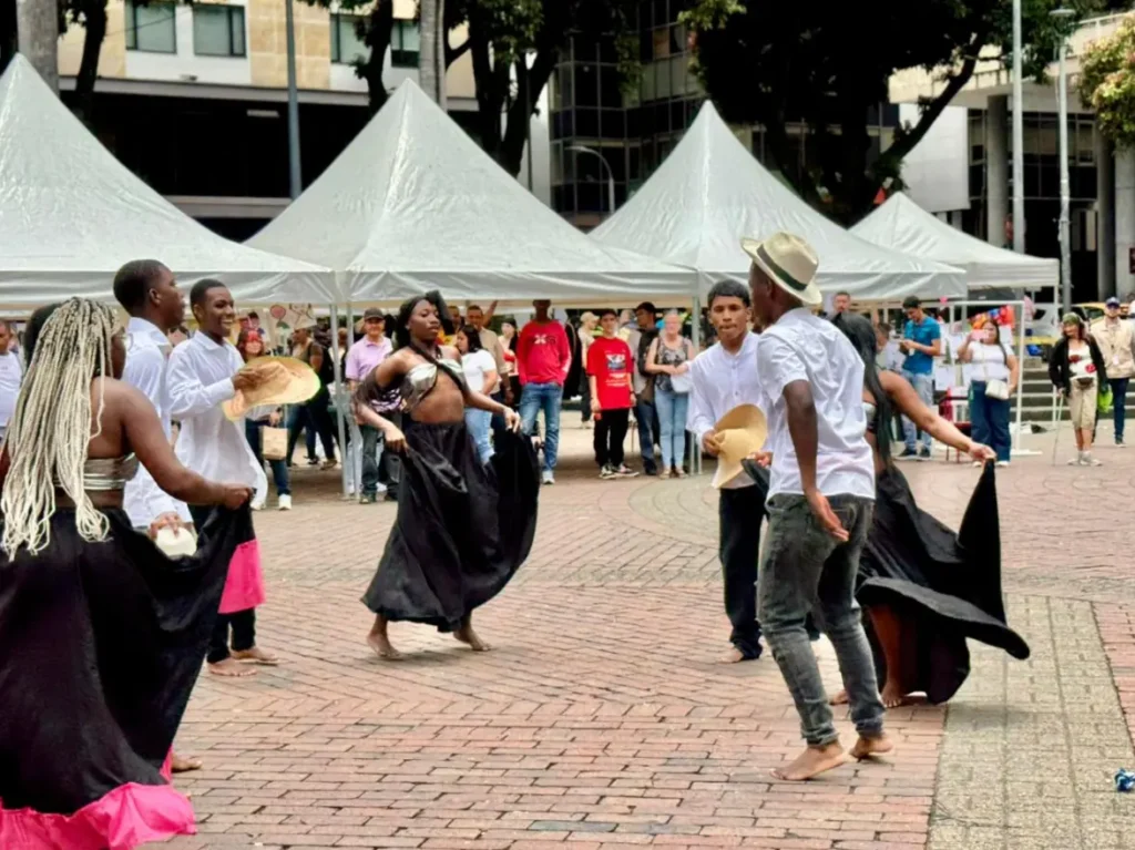 Posteriormente, la conmemoración se trasladó a la Plaza de Bolívar, espacio que se transformó en un escenario de esperanza y reactivación económica mediante una feria de emprendimientos liderada por la propia población víctima. Esta muestra productiva fue complementada por una oferta cultural y de memoria; por un lado, la Unidad de Búsqueda de Personas Dadas por Desaparecidas (UBPD) presentó la exposición «Donde estén los seguiremos buscando», visibilizando la incansable lucha de las madres buscadoras, mientras que grupos artísticos como Black Dance utilizaron las danzas del Pacífico para transmitir un mensaje de empatía y reconocimiento.