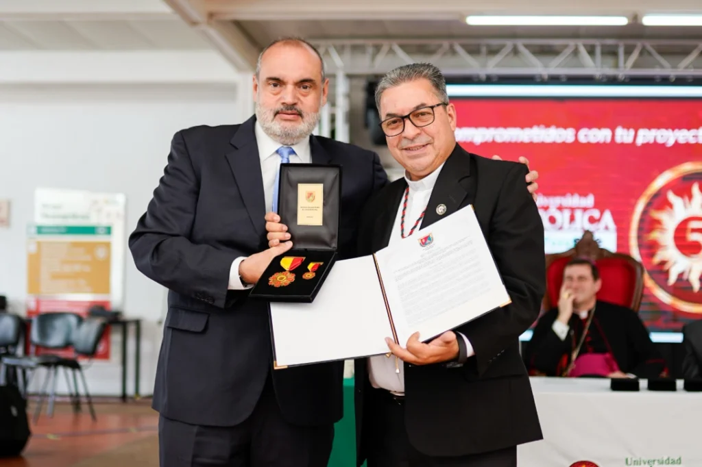Con la Cruz de los Fundadores, el alcalde de Pereira Mauricio Salazar Peláez reconoció a la Universidad Católica de Pereira en la celebración de los 50 años.