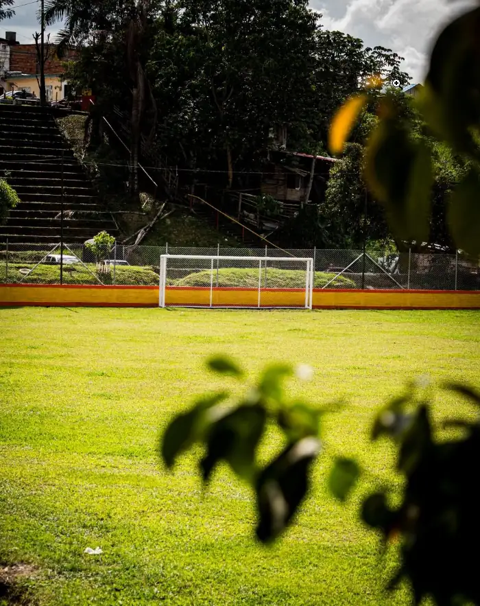La jornada inició en la comuna Cuba, en la cancha de fútbol La Bombonera, en el barrio Los Almendros, donde se realizaron trabajos de pintura, cerramiento y cambio de arcos, adecuaciones que permiten contar con un escenario más adecuado para la práctica del deporte y la integración de la comunidad.