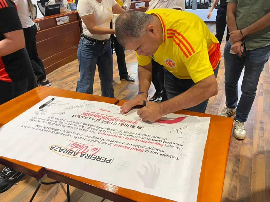 Por su parte, el primer vicepresidente del Concejo de Pereira, el concejal Héctor Hernández, firmante de este pacto, dijo que para los concejales de Pereira este acto es una prioridad, con el fin de mejorar la salud mental de los habitantes.
