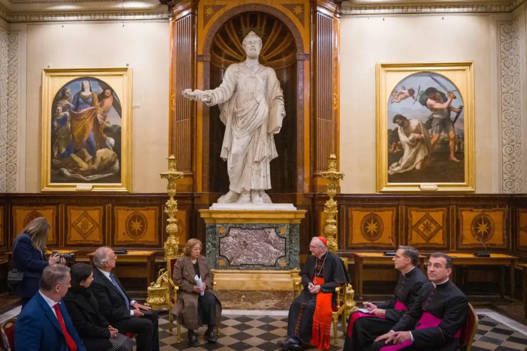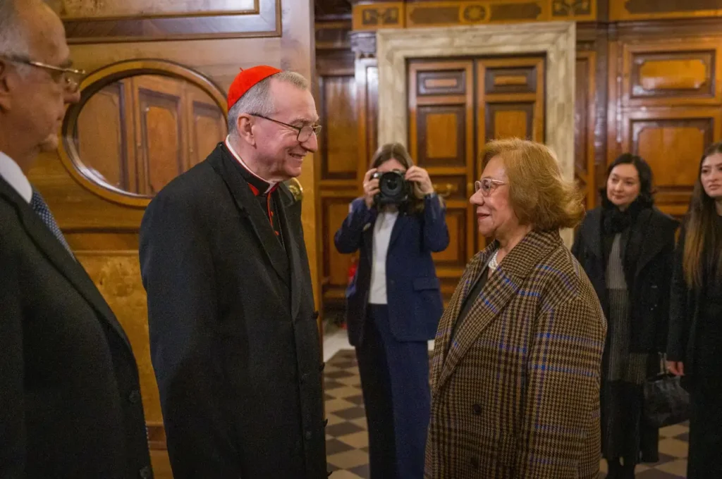 Las fotografías oficiales difundidas muestran a la canciller Villavicencio y al cardenal Parolin reunidos en un salón del Vaticano, durante el intercambio diplomático. No se compartieron otros detalles sobre el desarrollo del encuentro.