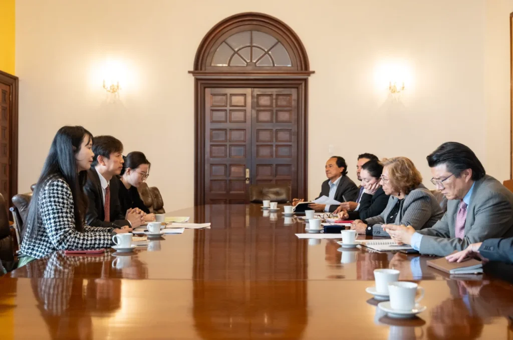 La Canciller Rosa Yolanda Villavicencio Mapy sostuvo reunión con el encargado de negocios de la República Popular China en Colombia. En el encuentro dialogaron sobre proyectos de mutuo interés en el marco del Plan de Cooperación de la iniciativa de la Ruta de la Seda.