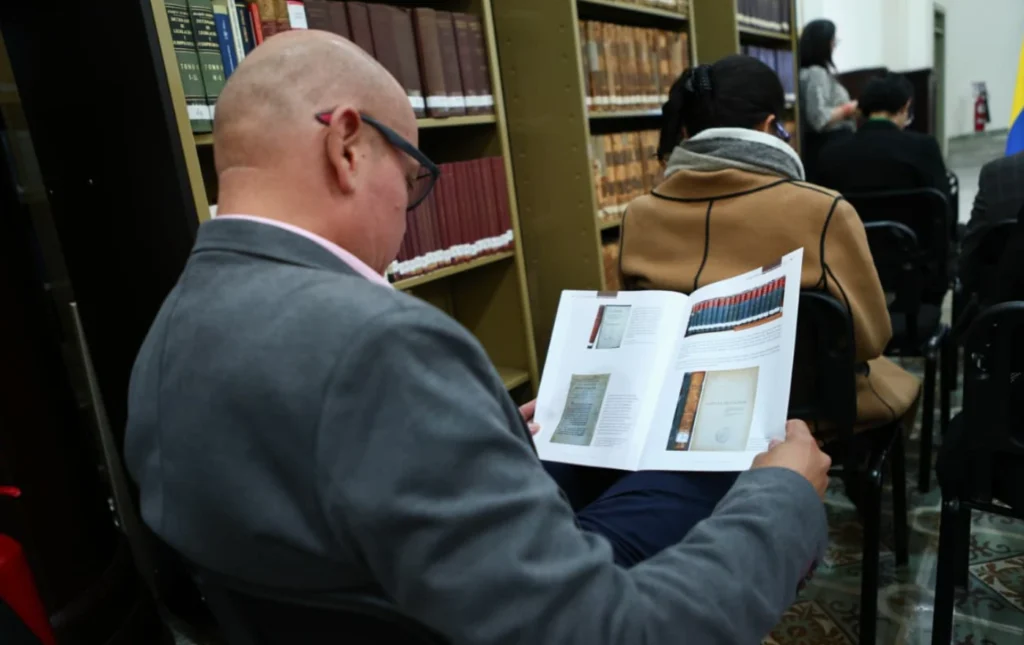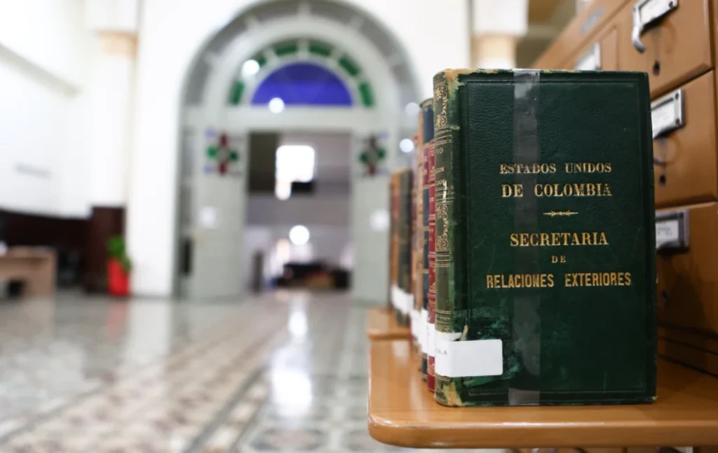 “Esta es una biblioteca que arranca a finales del siglo XIX y se va transformando frente a necesidades propias del ejercicio diplomático y de la política exterior colombiana, y ahí empieza a tener ese valor histórico en varias producciones que conservamos en esta colección”, explicó Juan Alexis Acero, historiador de la biblioteca.