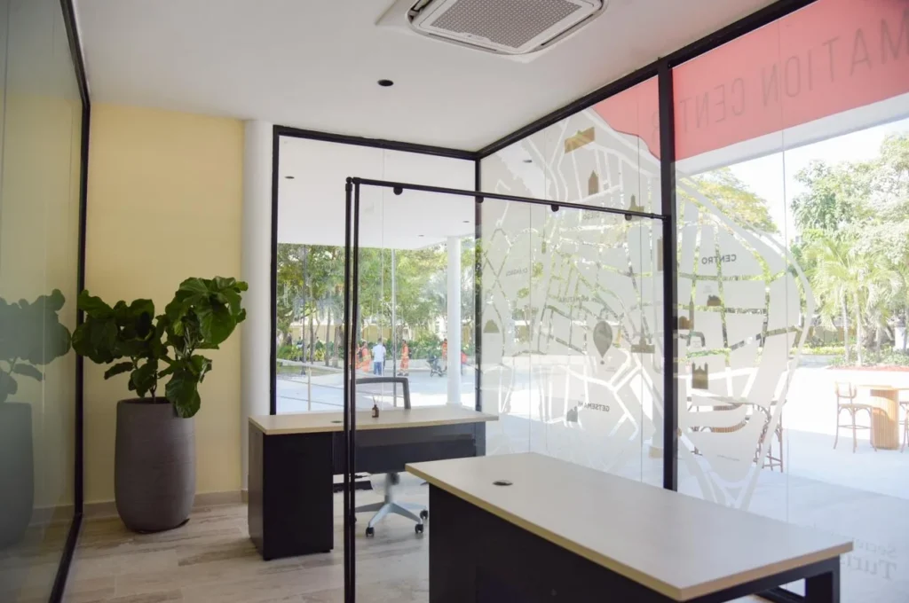 El espacio dispone de una zona de recepción y atención al público, área de coworking, zona de exposición para artesanías e información turística de la ciudad, dos puestos de oficina y una sala de reuniones, lo que lo convierte en un punto integral de atención, promoción y articulación del turismo en Cartagena.