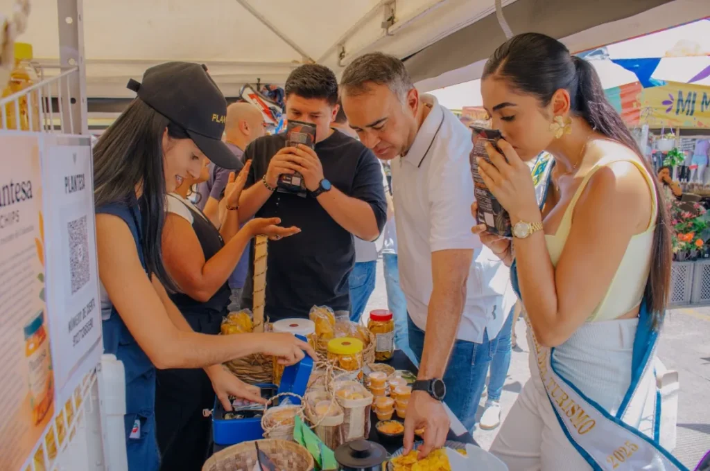 En la feria comercial instalada en el parque principal participaron 80 emprendedores de diferentes sectores: gastronomía, cafés, licores, bebidas, artesanías, accesorios, salud y bienestar, mercado campesino, moda, calzado, servicios y tecnología.
