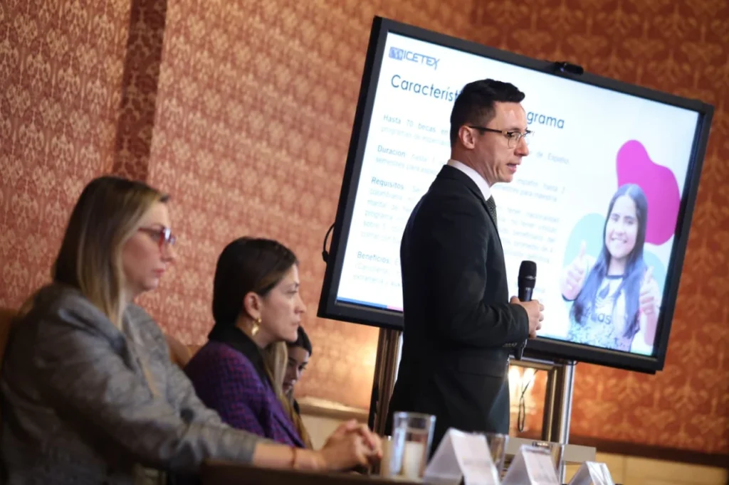 El Ministerio de Relaciones Exteriores y el Instituto Colombiano de Crédito Educativo y Estudios Técnicos en el Exterior (Icetex) presentaron las Becas Colombia ante representantes de las delegaciones internacionales acreditadas en nuestro país. Serán hasta 70 becas en tres modalidades: cursos de español, programas de especialización y maestría que estarán disponibles para que ciudadanos extranjeros puedan aplicar hasta el próximo 5 de junio en la página del Icetex.