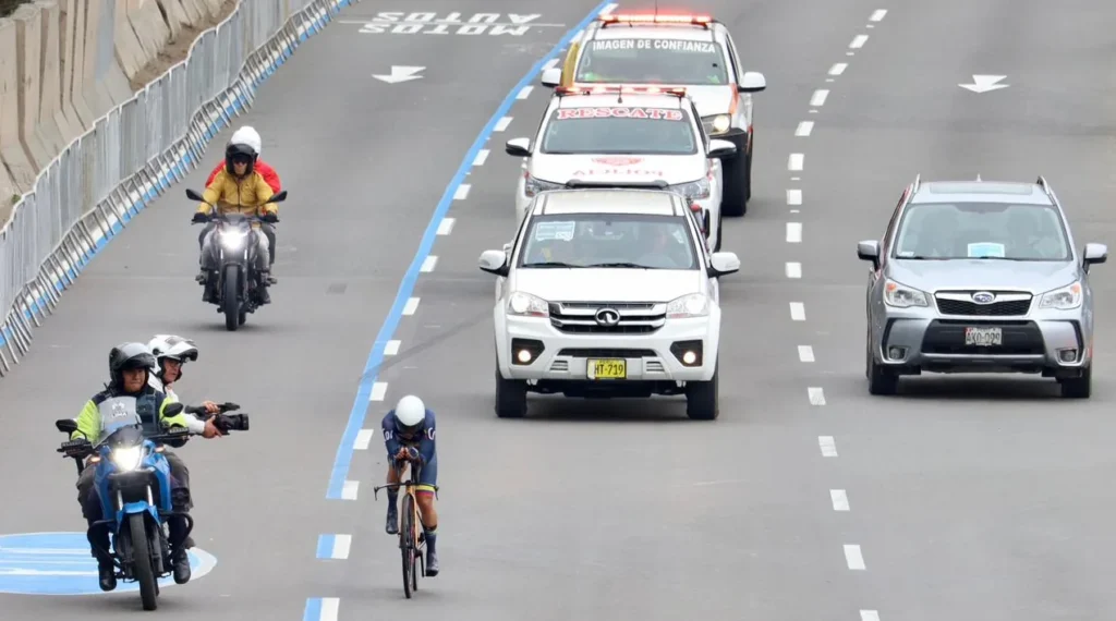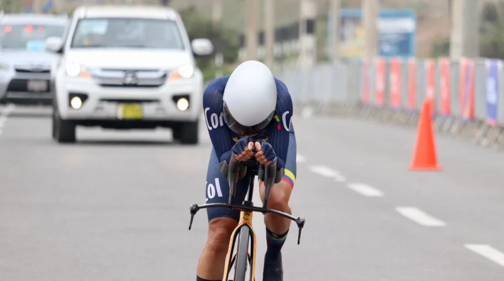 La jornada empezó con el dominio en el ciclismo ruta. En las contrarrelol individual de ambas ramas, se entonó el himno nacional. Diana Peñuela lo hizo en la prueba femenina (29:49,56, 22.1 km), mientras Walter Vargas se impuso en la masculina con un tiempo de 51:25,09, en 44.2 km de recorrido.