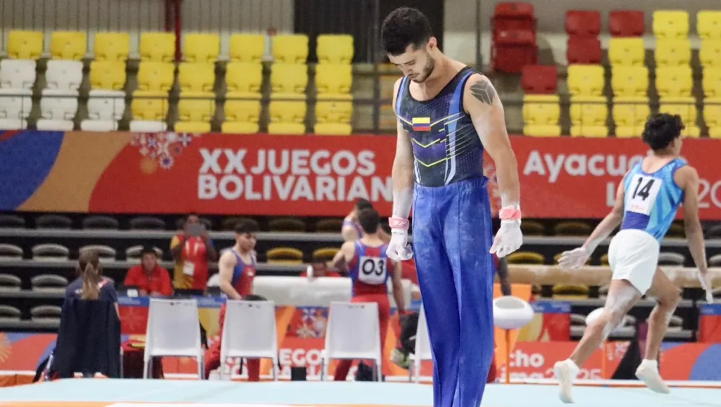 La gimnasia artística también aportó al primer lugar de Colombia en el medallero general de los Bolivarianos. En equipos masculino se logró el oro (292.496), superando a Chile y Guatemala.