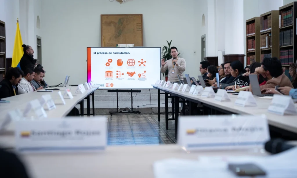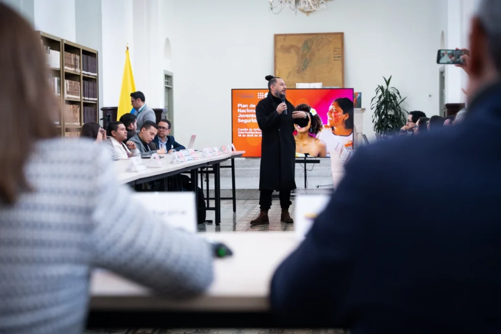 El encuentro, realizado en la Biblioteca Marco Fidel Suárez del Ministerio de Relaciones Exteriores, reunió a entidades del Gobierno nacional con competencias en juventud, paz y seguridad, que han participado en el proceso de construcción colectiva del Plan.