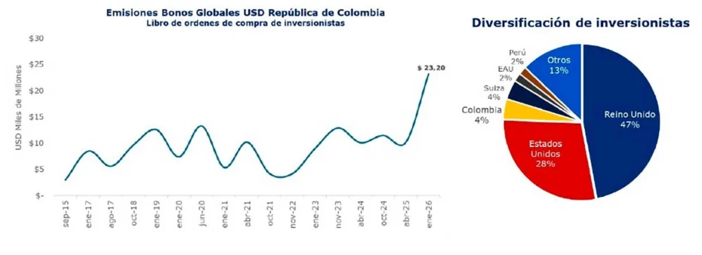 El ministerio de Hacienda y Crédito Público confirmó la emisión más grande en la historia de Colombia de bonos globales, que le permitirán a Colombia completar la meta de financiamiento para la vigencia de 2026.