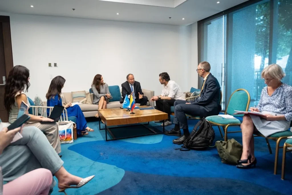 Durante el encuentro, el viceministro de Asuntos Multilaterales de la Cancillería, Mauricio Jaramillo Jassir, participó en el panel: “Construyendo un mundo digital para todos: paz e inclusión en la era de la IA”, donde planteó una reflexión crítica sobre el papel de los medios de comunicación y los algoritmos en la normalización de la violencia y la manipulación de la información, lo que debilita la libertad de expresión.