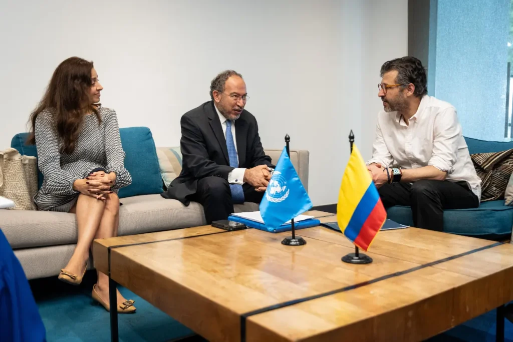Entre tanto, Jaramillo Jassir y la embajadora y delegada Permanente de Colombia ante la UNESCO, Laura Guillem, sostuvieron un encuentro bilateral con el subdirector General de la UNESCO para el sector de Comunicación e Información, Tawfik Jelassi, donde se renovó el compromiso del país de impulsar una transformación digital que fortalezca la educación, la innovación y la participación ciudadana.