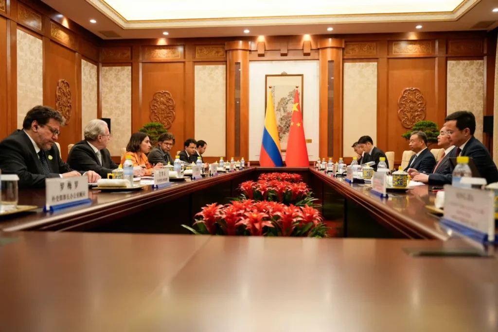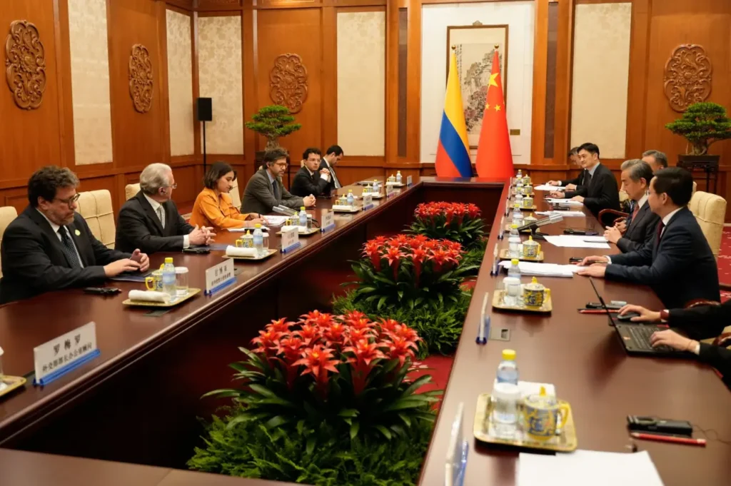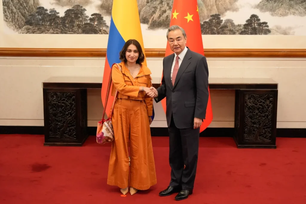 En el inicio de la visita oficial del Gobierno de Colombia a la República Popular China, la canciller Laura Sarabia sostuvo una reunión bilateral con el Ministro de Relaciones Exteriores de China, Wang Yi, centrada en revisar los puntos actuales de cooperación entre ambos países y en trazar una ruta conjunta hacia nuevos proyectos estratégicos. La conversación giró en torno al interés mutuo por avanzar de manera eficiente y coordinada en áreas prioritarias para el desarrollo sostenible y la integración biregional.