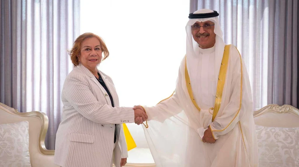En el marco de la visita oficial a Arabia Saudita, la ministra de Relaciones Exteriores, Yolanda Villavicencio, quién hace parte de la comitiva, se reunió con Abdel Aziz Hamad Aluwaisheg, secretario general adjunto para Asuntos Políticos y de Negociación del Consejo de Cooperación del Golfo (CCG).