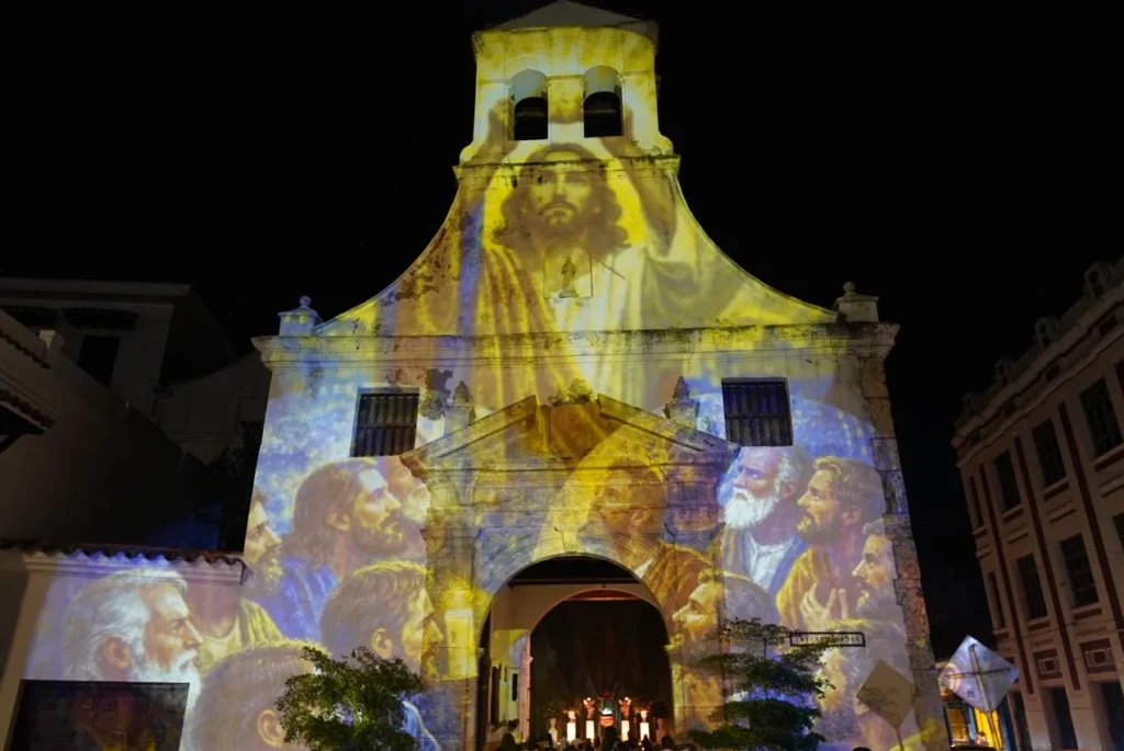 En esta ocasión, la Alcaldía Mayor de Cartagena dispuso de una experiencia visual sin precedentes con la proyección de mapping religioso en las fachadas de los siguientes templos emblemáticos: