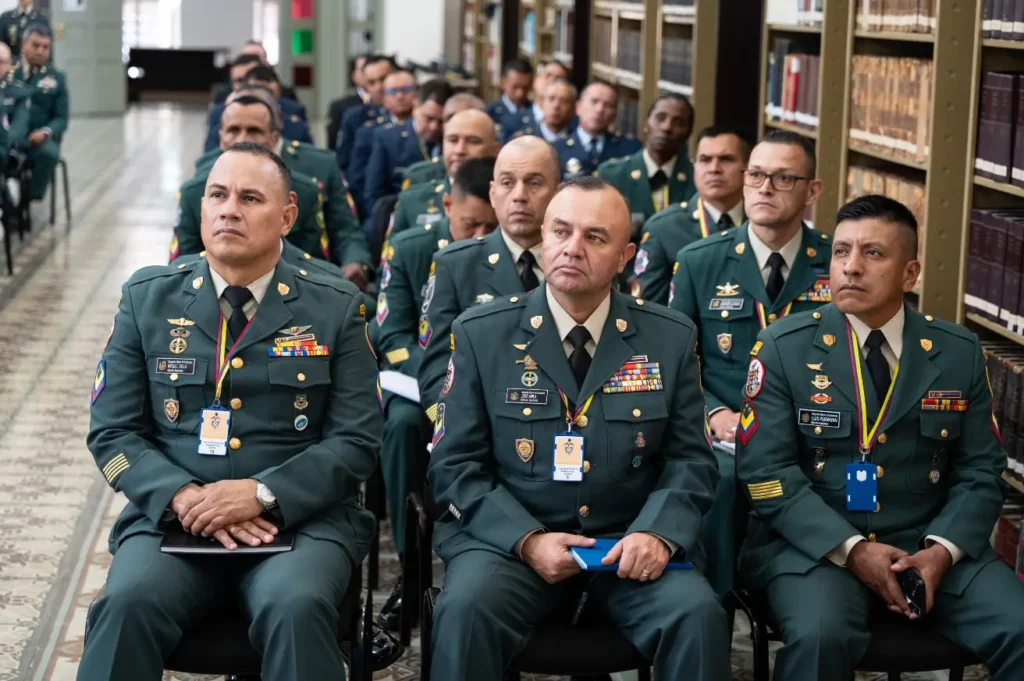 En esta versión, celebrada en las instalaciones de la Biblioteca Marco Fidel Suárez, participaron 42 oficiales de alto rango de las Fuerzas Militares que asumirán próximamente funciones como agregados militares, y 24 suboficiales superiores que se desempeñarán como secretarios en las agregadurías de Colombia en el exterior.