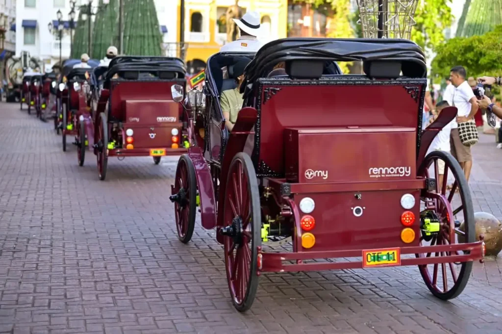 Cartagena es hoy pionera en el mundo en implementar un sistema completo de carrozas 100% eléctricas, haciendo al destino más competitivo al usar energía solar para abastecer la estación que cargará las baterías de los coches; al no generar emisiones de gas para funcionar; al sustituir 120 equinos, apostando por su cuidado y bienestar; al ser un producto innovador y pionero en este tipo de transporte turístico sostenible, y al integrar comunicaciones, monitoreo y digitalización para un servicio eficiente y seguro.