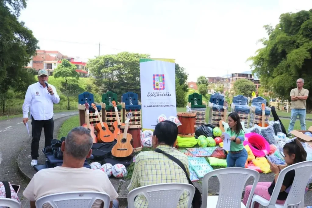 El alcalde Roberto Jiménez entregó dotación lúdico-deportiva a 6 comunas de Dosquebradas