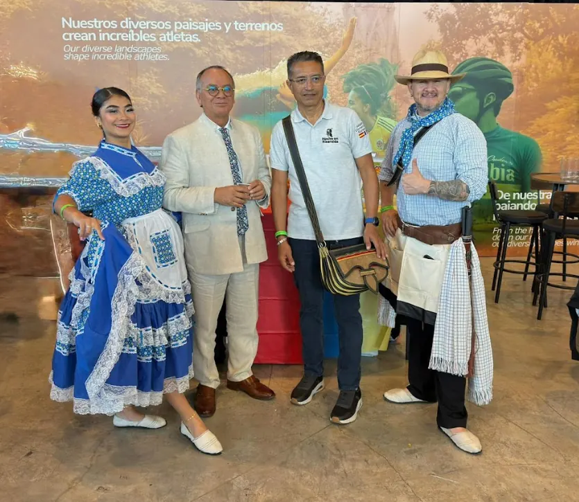 El estand colombiano también contó con la participación de dos bailarines de la Escuela Popular de Artes de la Gobernación de Risaralda, quienes se robaron las miradas con su muestra artística en la tarima principal del evento, el mismo escenario donde se desarrollarán actos previos al Mundial de la FIFA, llevando el arte y la cultura risaraldense a un público internacional.