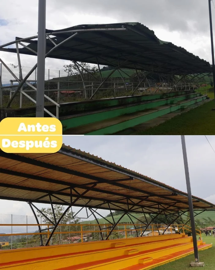 La jornada inició en el corregimiento de La Bella, donde se verificaron los avances en el mejoramiento del escenario deportivo del sector, con intervenciones en graderías, luminarias y adecuaciones generales que hoy permiten un mejor aprovechamiento del espacio por parte de la comunidad.