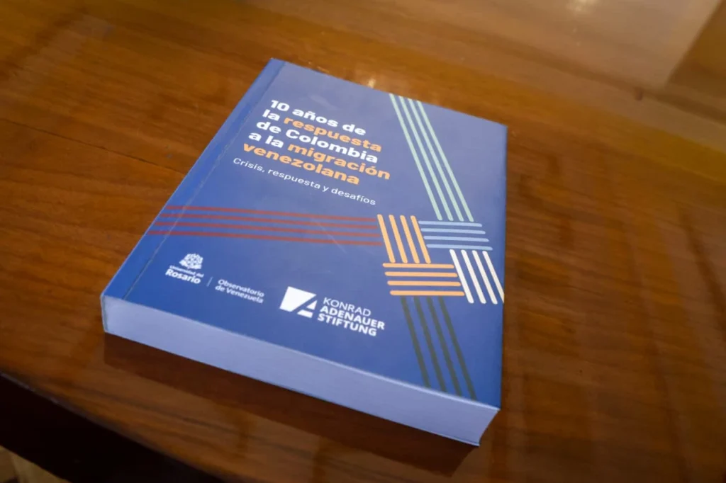 El diálogo se centró en el libro “10 años de la respuesta de Colombia a la migración venezolana. Crisis, respuesta y desafíos”, el cual contó con el apoyo de la Fundación Konrad-Adenauer-Stiftung. Con la presencia de las y los autores, y desde una mirada crítica y constructiva, se destacó el principal hallazgo del proceso de investigación que arrojó que Colombia ha desarrollado un proceso de innovación en política pública, transitando de un enfoque de regularización hacia una política de Estado orientada a la integración social y económica de migrantes en el territorio nacional. En el diálogo también se compartieron los obstáculos persistentes que enfrenta esta población en materia económica, burocrática y de acceso a la tecnología.