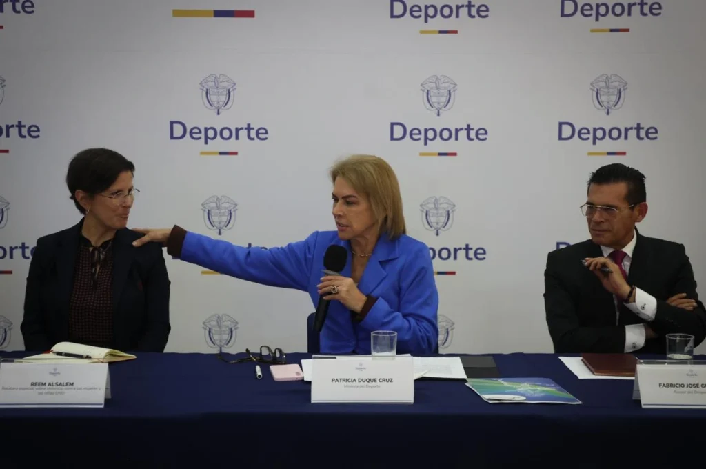 La ministra del Deporte, Patricia Duque, sostuvo este lunes un encuentro con Reem Alsalem, Relatora Especial de las Naciones Unidas sobre la Violencia contra las Mujeres y las Niñas, con el propósito de dialogar sobre los avances y desafíos de Colombia en la prevención, atención y erradicación de las violencias basadas en género en el deporte. La reunión, desarrollada en Bogotá, permitió presentar el balance institucional y reafirmar el compromiso del Estado con la garantía de entornos deportivos seguros, equitativos y libres de violencia.