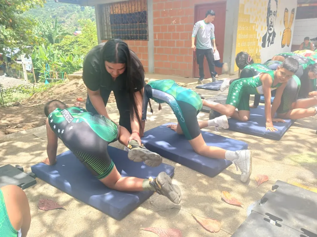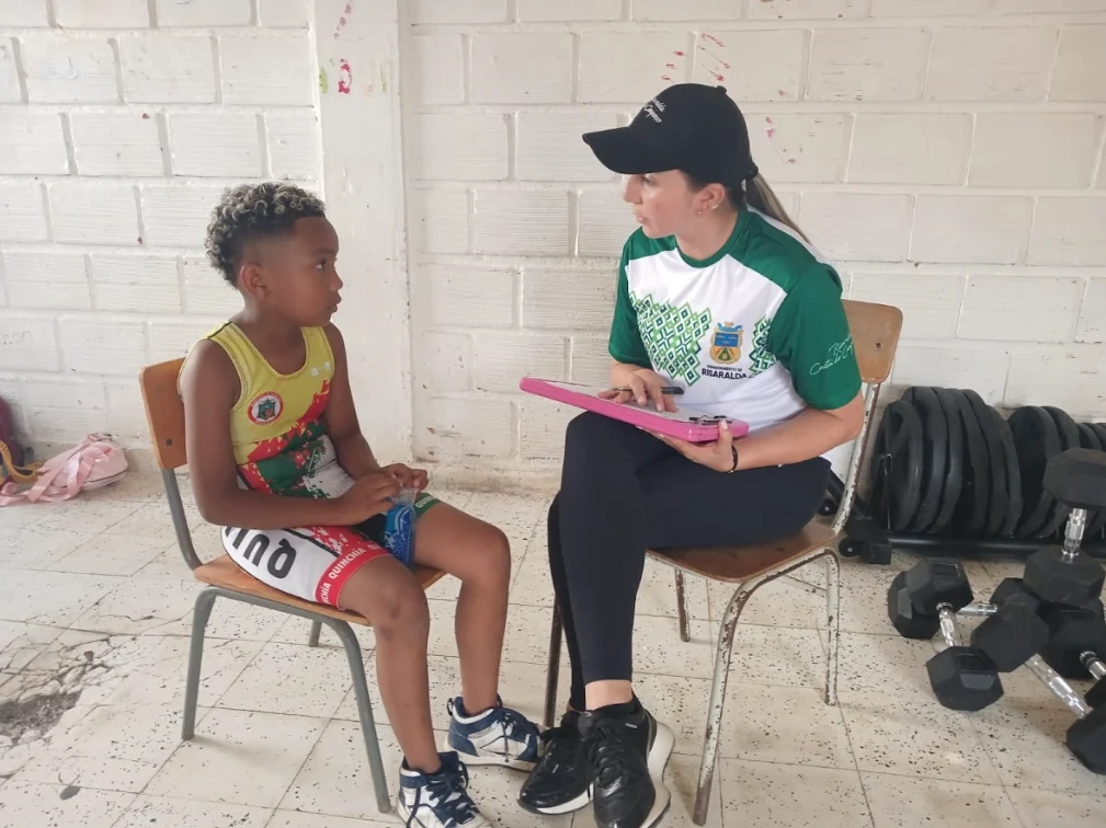 Cerca de 20 niños, niñas y jóvenes del Polo de Desarrollo de levantamiento de pesas, liderados por la formadora Mayeli Becerra, fueron intervenidos por la fisioterapeuta Natalia Marín, el nutricionista Johan Hurtado y la psicóloga Diana Osorio, con el objetivo de fortalecer sus capacidades físicas y psicológicas.