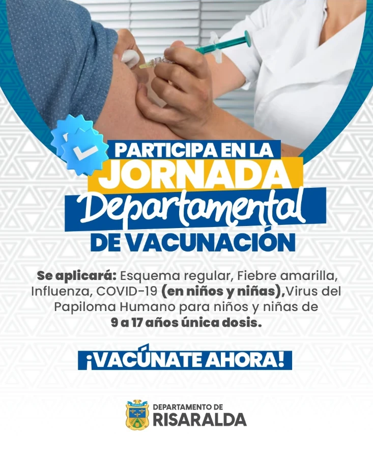 La Gobernación de Risaralda, a través de la Secretaría de Salud, entidades municipales y hospitalarias, realizará la segunda jornada departamental de vacunación del año 2025, el próximo sábado 19 de julio.