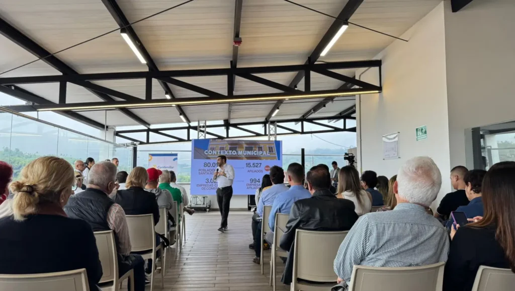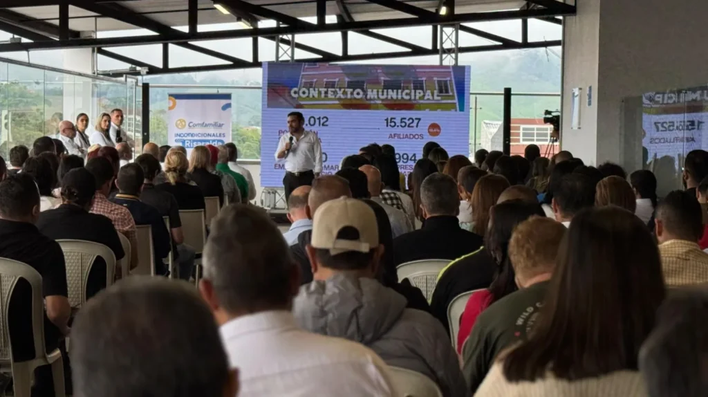 El Recorrido Territorial de Comfamiliar Risaralda por el departamento, llegó HOY a Santa Rosa de Cabal, donde el Director Administrativo Lucas Ignacio Arbeláez, socializó con más de 130 empresarios representantes del sector productivo del municipio, el Plan Estratégico 2026-2030, haciendo especial énfasis en la población afiliada y su objetivo de expansión en cobertura de afiliados, así como los megaproyectos que impactarán de manera directa al municipio, como lo son el Parque Comfamiliar de Santa Rosa en el lote La Camelia, y la operación y puesta en marcha del Teatro Cabal con una amplia oferta cultural que aporte al turismo y su posicionamiento nacional.