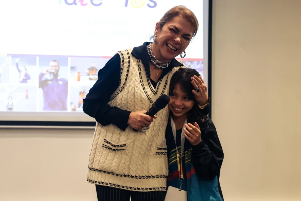 La jefe de cartera compartió con taekwondistas, entre los y 15 años, provenientes de 11 municipios del país como El Tambo, Florencia, Yopal, San José del Guaviare, Quibdó y Cereté. Fue un espacio ameno y fraterno dentro de la amplia agenda del evento, que empezó el domingo y termina con combates este jueves en el Palacio de los Deportes.