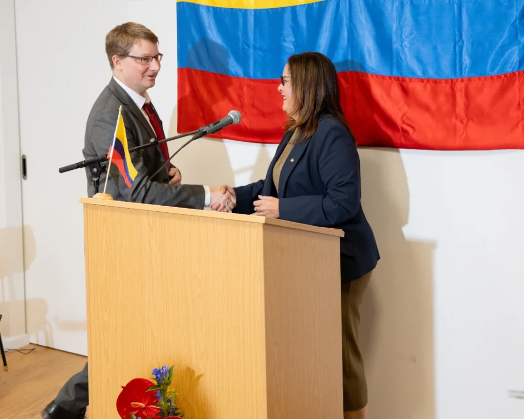 Por su parte, el nuevo Cónsul Honorario de Colombia, quien es Director General de Klett EDU, empresa del Grupo Klett, desde 2017, se declaró muy agradecido con la confianza que el Gobierno de Colombia y la embajadora Salazar Mejía han depositado en su nombre con la distinción de representante honorario de nuestro país y nuestros ciudadanos en el sur de Alemania. «Además de los temas clave de la diáspora colombiana y la migración laboral, abogaré por la cooperación en los ámbitos empresarial y tecnológico, y utilizaré las redes existentes para seguir construyendo puentes culturales», dijo.