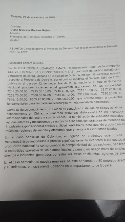 Los representantes del sector destacaron que la industria siderúrgica y metalmecánica es un motor de empleo, encadenamientos productivos e inversión. Según el DANE, la industria básica del hierro, el acero y la fundición ha generado cerca de 10.000 empleos en lo corrido del año, puestos de trabajo que el sector considera prioritario proteger.