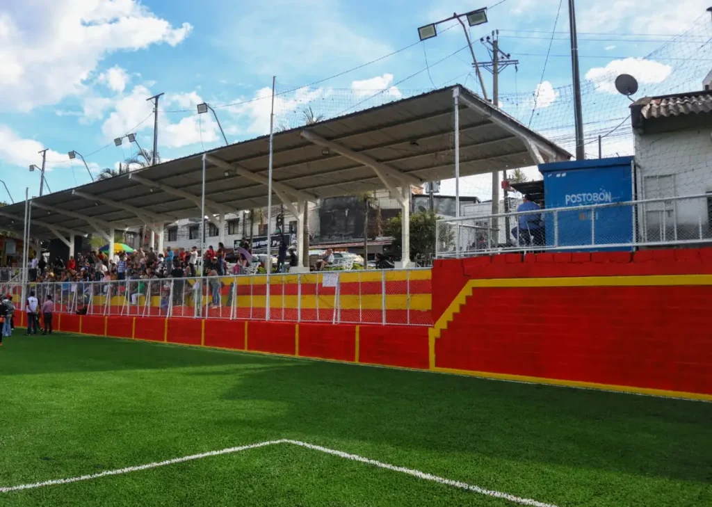 “Esto es una felicidad enorme. Hace mucho tiempo queríamos una cancha así, un lugar donde niños y adultos podamos jugar. Esta es la única zona deportiva del barrio, nuestro punto de encuentro, y estaba completamente deteriorada: el alcantarillado dañado, sin arcos ni luces”, relató John Wilmar Narváez Molina, habitante de la comuna Río Otún.