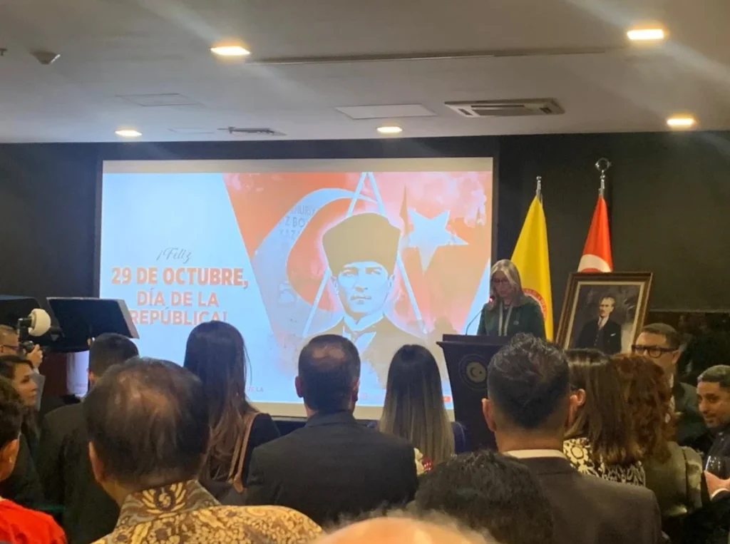 Colombia es hoy uno de los tres socios estratégicos de Türkiye en América Latina y el Caribe, que fortalece el diálogo político y la cooperación bilateral, manifestó la Embajadora de Turkiyé, Beste PehlivanSun, al conmemorar el 102º aniversario de la proclamación de su República, en un acto que reafirmó la creciente alianza entre Türkiye y Colombia en materia de cooperación, educación, cultura y comercio.