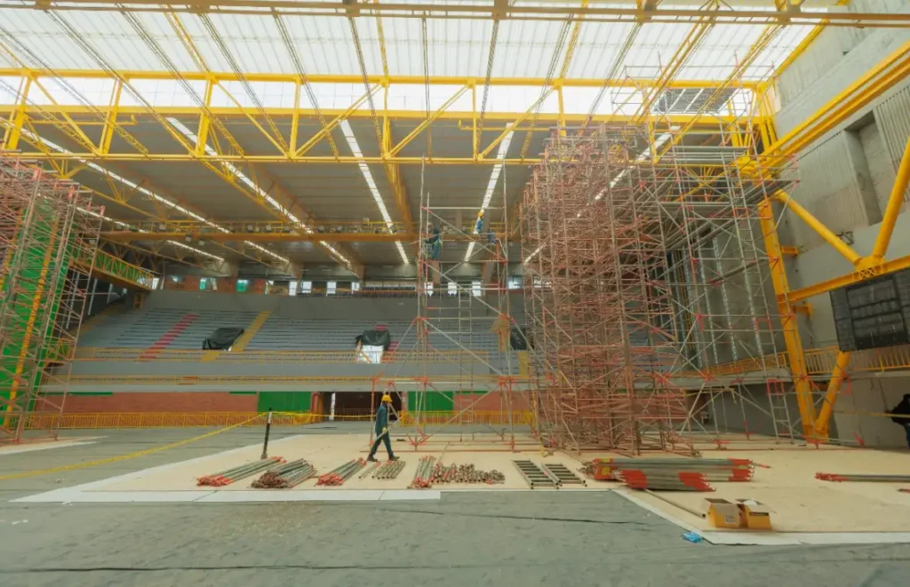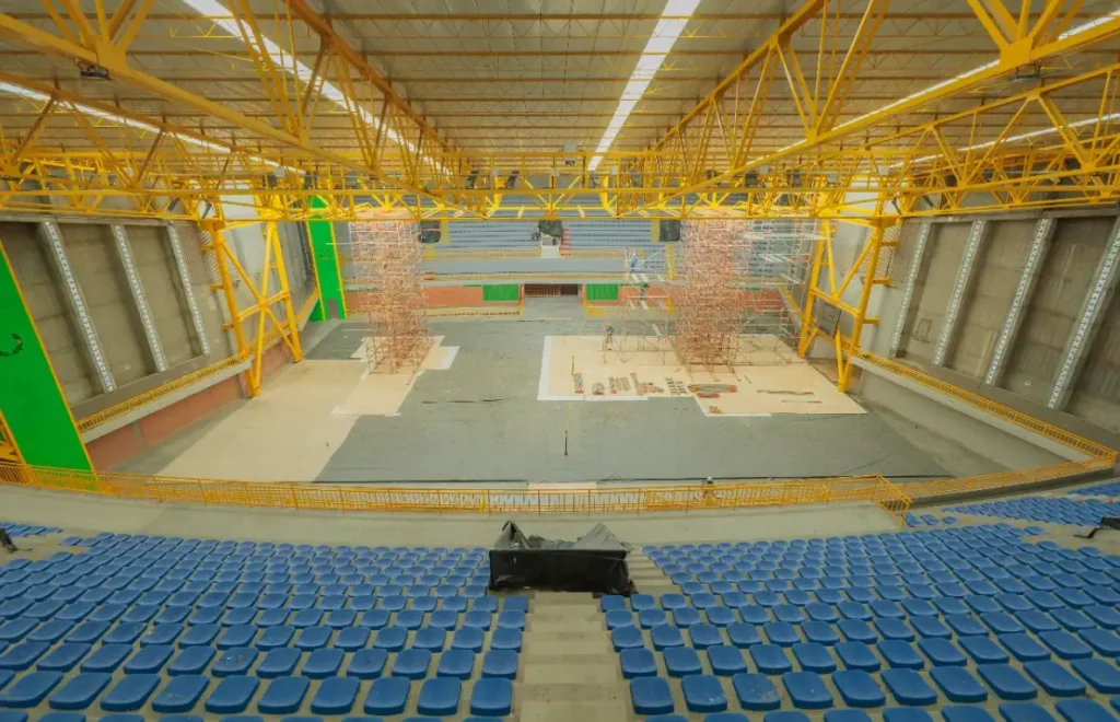 “Tenemos una primera etapa donde se realizaron reforzamientos generales de la estructura, una placa nueva en el piso del escenario, se habilitaron espacios en el sótano de acuerdo con las reglamentaciones solicitadas por el Ministerio de Deportes, como áreas de calentamiento, fisioterapia, zona antidoping y demás áreas que se piden para cumplir los requisitos”. Según el funcionario, todo lo anterior está listo y adecuado para el uso de los deportistas.