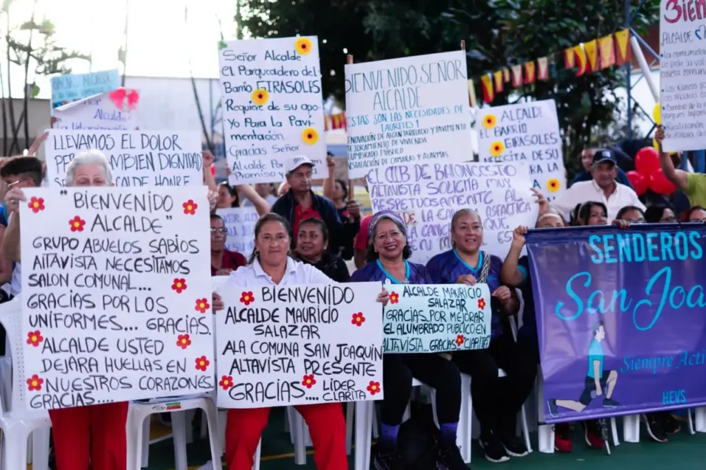 Por último, Clara Henao, habitante del barrio Altavista, dijo que “quiero agradecer porque se han logrado muchas cosas como uniformes para el grupo de la tercera edad, renovación del alumbrado público, mejoramiento de canchas y de vivienda. También se han realizado importantes acciones con los jóvenes. Gracias, señor alcalde Mauricio Salazar, por las grandes obras en nuestra comuna San Joaquín, como la intersección de Corales, deportes y recreación. Muchísimas gracias por pensar en nosotros y por el mejoramiento de nuestra infraestructura”.