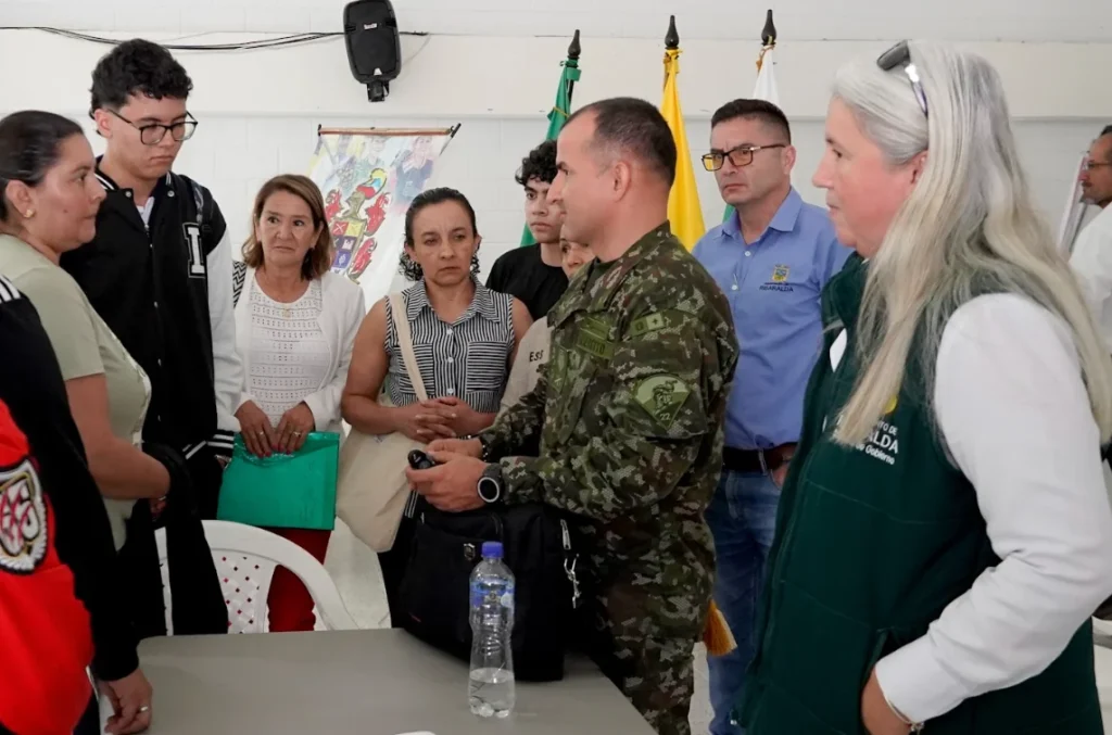 El sargento viceprimero Miguel ángel Vega Contreras, suboficial del distrito militar No. 22, dijo: “Nos encontramos acá en el municipio de Santa Rosa de Cabal en compañía de la Secretaría de Gobierno Departamental, brindándoles capacitación a los jóvenes del grado 11, padres de familia y a los docentes en la parte de definición de situación militar”.