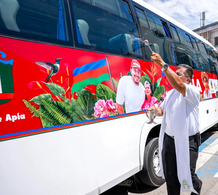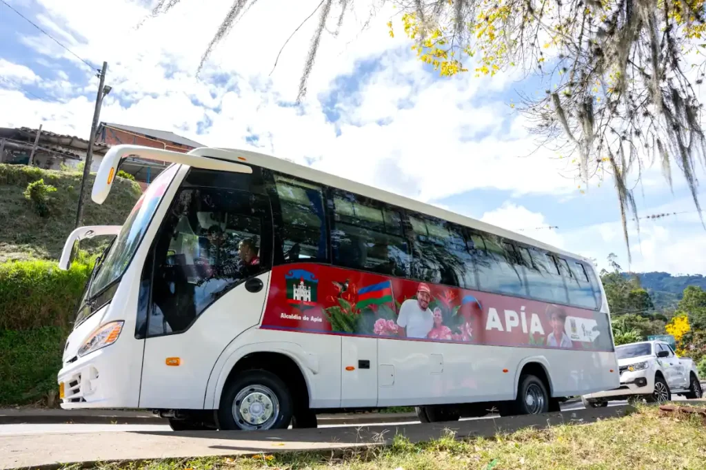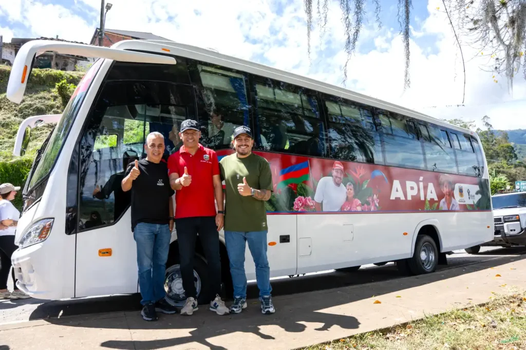 El gobernador Juan Diego Patiño Ochoa expresó: “Estamos felices de cumplirle a Apía con obras que transforman vidas. Este bus y esta ambulancia reflejan nuestro compromiso con la educación y la salud, además de proyectos como el parque recreativo en ejecución por $700 millones para adultos mayores y jóvenes”.