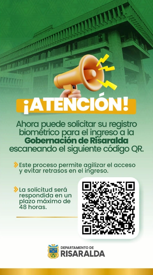 La Gobernación de Risaralda, a través de la Secretaría Administrativa, habilitó un formulario digital para el registro biométrico de acceso al edificio central, con el fin de agilizar el ingreso de usuarios y colaboradores y evitar retrasos en el proceso.