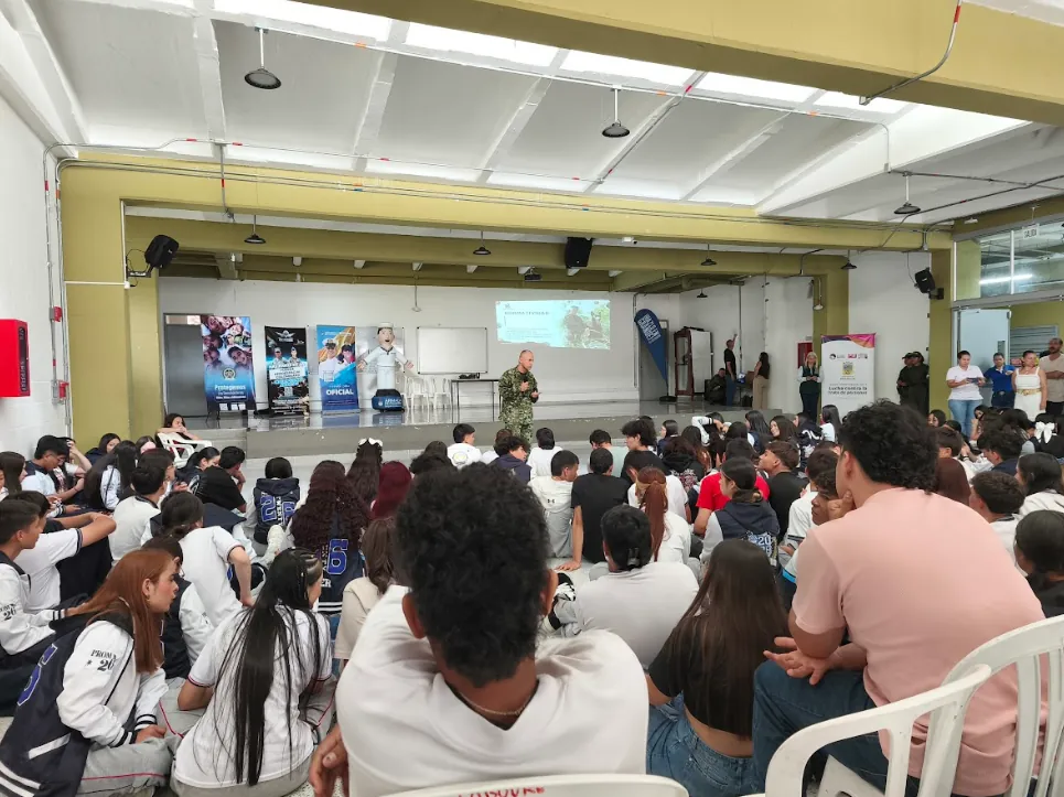 Las instalaciones de la Institución Educativa Labouré fueron el epicentro de este encuentro que congregó a estudiantes de cuatro planteles oficiales; durante la jornada, expertos de la administración departamental y las autoridades dictaron charlas de sensibilización enfocadas en la prevención del consumo de sustancias psicoactivas y la identificación de modalidades de trata de personas, entregando a los jóvenes pautas de autocuidado y rutas de denuncia para evitar que caigan en redes delictivas o situaciones de vulnerabilidad.