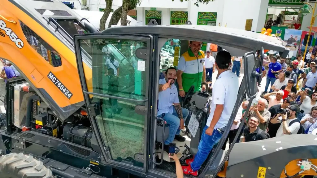 El gobernador Juan Diego Patiño entregó una moderna motoniveladora amarilla al municipio de Marsella, adquirida mediante el mecanismo de Presupuesto Participativo, con el cual la comunidad priorizó el mejoramiento de sus vías rurales.