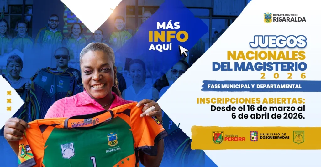 Con inscripciones ya en marcha, docentes, directivos docentes y administrativos de Risaralda, Pereira y Dosquebradas tienen la oportunidad de participar en la fase municipal y departamental de los Juegos Nacionales del Magisterio 2026.