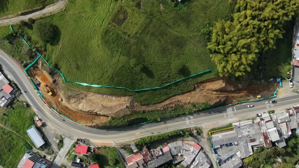 En materia técnica, el proyecto presenta avances significativos en diferentes componentes. En movimiento de tierras, se han ejecutado excavaciones por cerca de 4.200 metros cúbicos para la conformación de la segunda calzada. De igual forma, se adelantan labores de estabilización mediante la adecuación de taludes y la instalación de anclajes pasivos, con el fin de garantizar la seguridad del terreno.