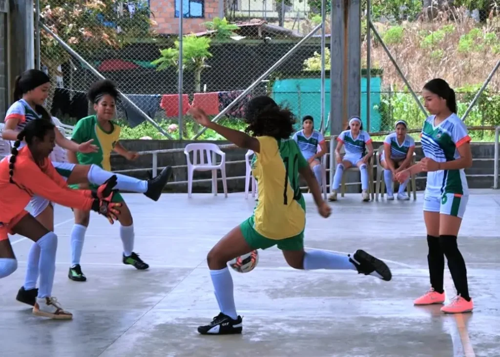 Uno de los encuentros más emocionantes se vivió en Pueblo Rico, donde el conjunto local empató a dos tantos en fútbol prejuvenil. Sin embargo, el marcador será tan solo una anécdota, puesto que todas las miradas estuvieron puestas en Leidy Valencia, entrenadora de los pueblorriqueños, la única mujer entrenadora de este deporte en esta fase de Intercolegiados
