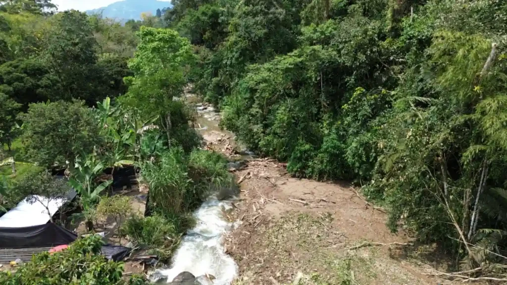 • El material vegetal causó taponamiento de la quebrada La Cristalina, reduciendo su cauce entre un 70 y 75 %, y generando el aumento significativo del nivel del agua.