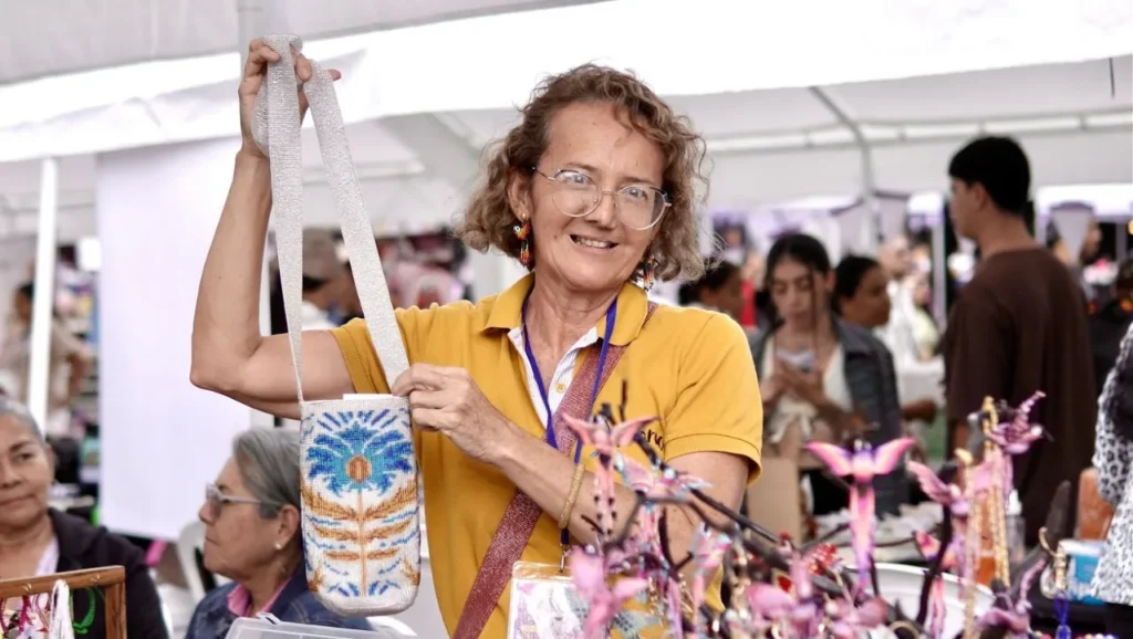 Luz Henao, creadora de Arte Poupé, destacó la sostenibilidad como eje de su propuesta “Usamos tela de yute y costal de café directo de las fincas para crear bolsas de compras y reducir el plástico. Agradecemos estos espacios a la Gobernación y a Mujeres como Tú, porque nos ayudan a visibilizarnos. A veces estamos muy escondiditas, y aquí podemos mostrar lo que hacemos”.