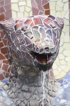 Gaudí utilizaba baldosas, platos y vidrios rotos para cubrir superficies, creando con estas piezas mosaicos coloridos con vida propia, como los que revisten el dragón del Parque Güell o los pináculos de las torres de la Sagrada Familia.